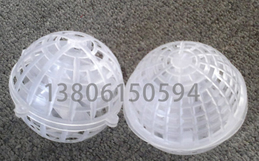 该填料系列由具有耐腐、耐温、耐老化、高强度的高分子聚合物注塑而成,分内外双层球体,外部为中空鱼网状球体,内部特殊工艺制成的弹性毛丝单体组合而成。主要起生物膜载体的作用,同时兼有截留悬浮物的作用,具有生物附着力强、比表面积大、孔隙率高、化学和生物稳定性好、经久耐用、不溶出有害物、 不引起二次污染、防紫外线、抗老化、亲水性能强,阻力小,布水、布气性能好,又有功割气泡作用等特点,在使用时直接投入水中,在水里似沉非沉,能全方位自由活动,无死区。可视水质浓高低和水量的增减,填料可多可少。实际投放量为池体积的30%-70%,进出口需用格网拦住,以免随水漂走。 参数规格:单元直径150mm, 100mm,80mm,三种规格,中心绳有塑料绳及纤维绳两种.